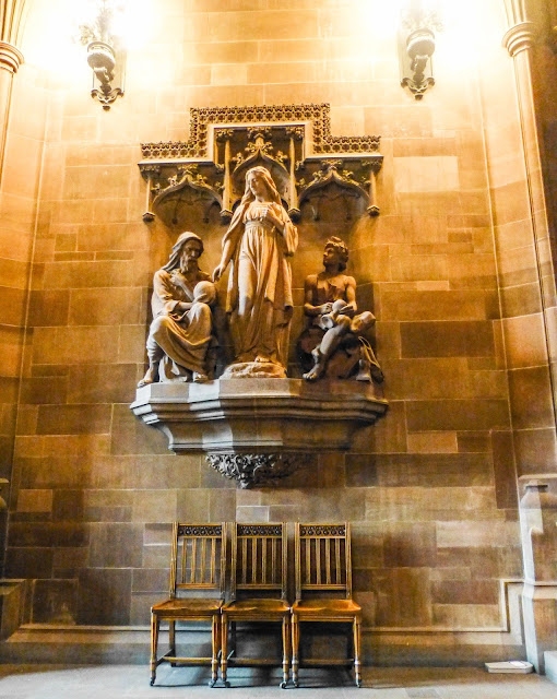 statues symbolized Mrs Rylands' belief in the superiority of Theology to Science and Art.